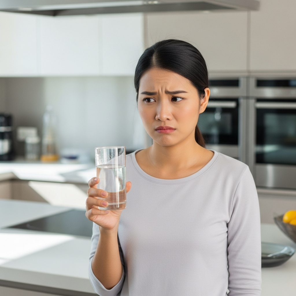 Mùi clo mạnh: nước chứa nhiều clo dư – dễ gây khô da, đỏ mắt, rát khi rửa mặt.